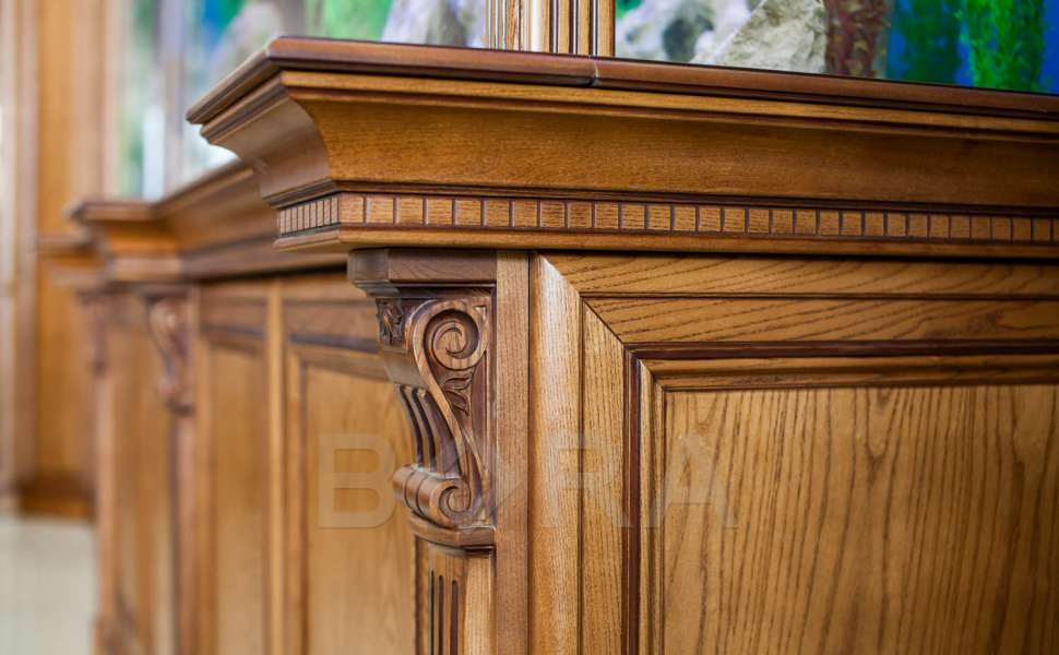 Торцы на прямых и дуговых фризах не шпонируются и не имеют лакокрасочного покрытия, т.к. в процессе установки, торцуются по месту.